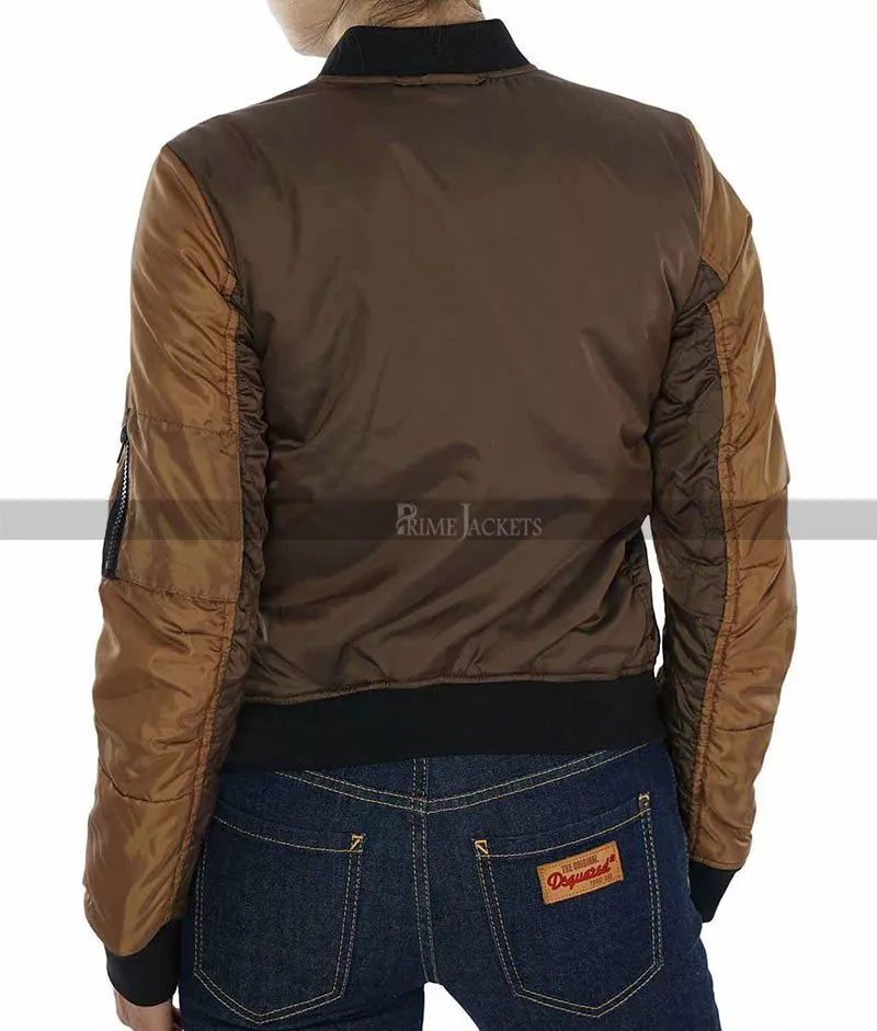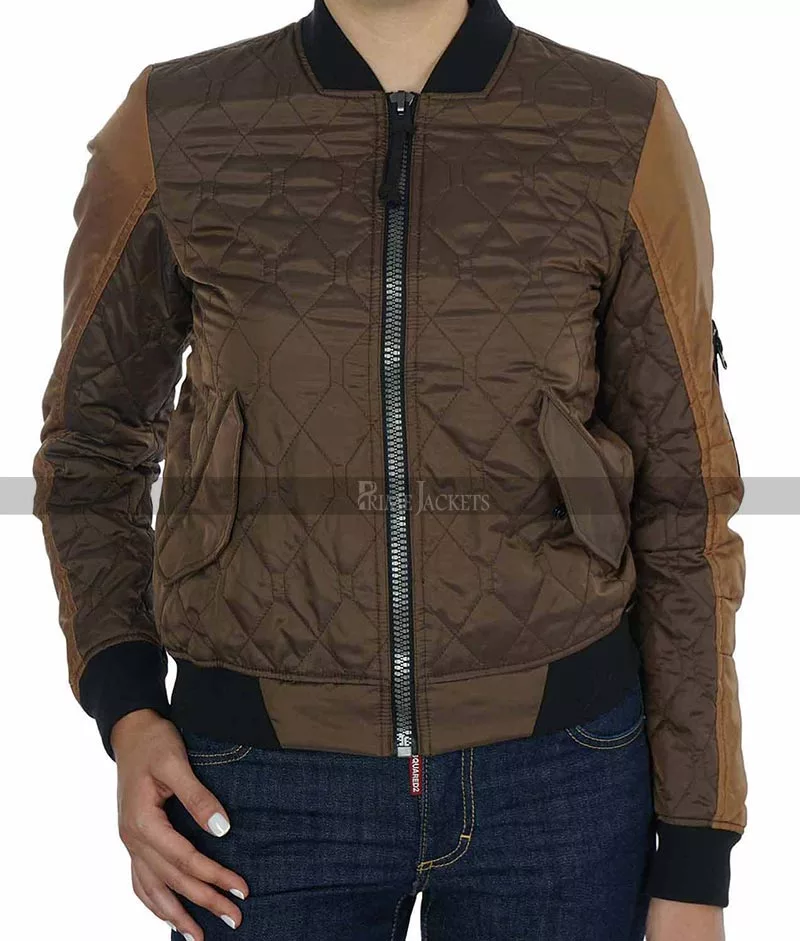 Flawlessly textured with impeccable quilted stitching, this is a lightweight bomber jacket presented as a versatile outerwear staple for every day wearing. It is a signature style ensemble of the stunning English actress Elizabeth Henstridge in the famous TV show Agents Of S.H.I.E.L.D. The jacket reveals best quality construction with top quality satin material. The inner side of agents of shield elizabeth henstridge jacket has been made extremely comfy with a viscose lining. This classic piece of art features a rib knitted collar and a heavy duty front zippered closure. There are two flapped side pockets and a utility sleeve pocket for a dazzling look. Grab it now and layer it over off-duty looks for a cool, casual vibe.