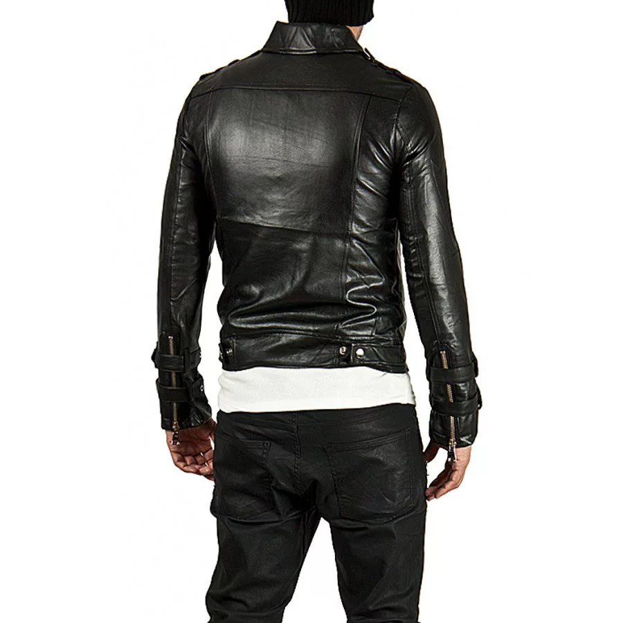 Anyone looking for something trendy and comfortable must look forward to ordering this Mens Asymmetrical Jacket. It is made with the best leather material and has an inner lining of viscose. The base color of this beauty is black and gives a very glossy shine to the overall look of the jacket. This Asymmetrical Leather Jacket is one of the finest choices to grab, and if you want something unique to be paired with your jeans, this jacket must be a necessary have choice. It has a comfortable feel inside out, and there is a closure zipper in the asymmetrical layout. There are so many sizes to go for, and these sizes may be customized when required. The back is plain, and the stitching has been done perfectly seamlessly, making this  Slim Fit Biker Jacket stand out incredibly. It is good to go for all occasions and may look very trendy and comfortable in all aspects no matter what.