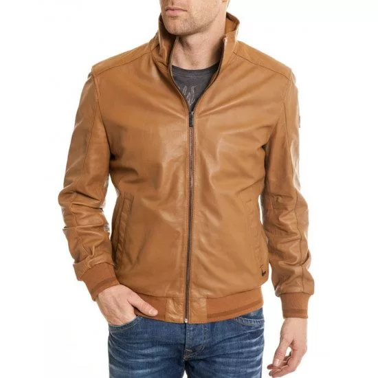 Casual Wear Men’s Bomber Camel Brown Leather Jacket