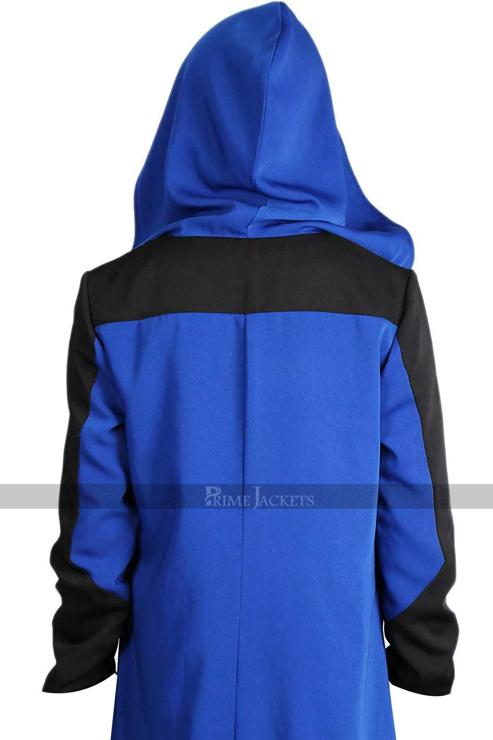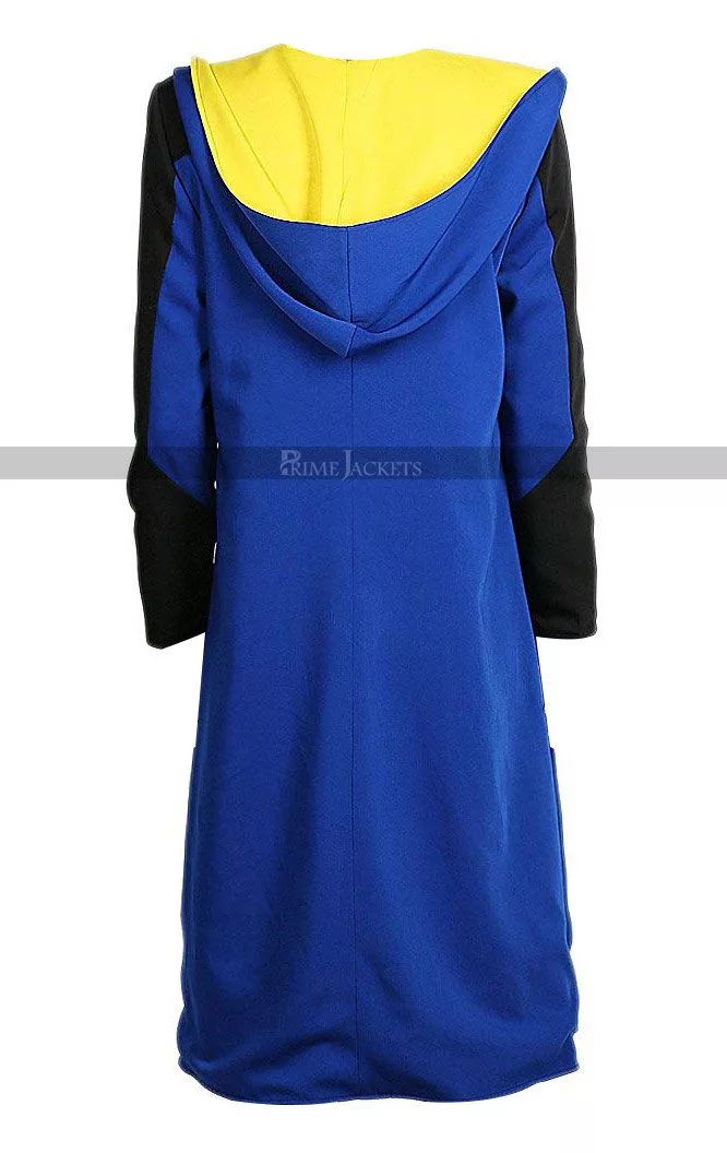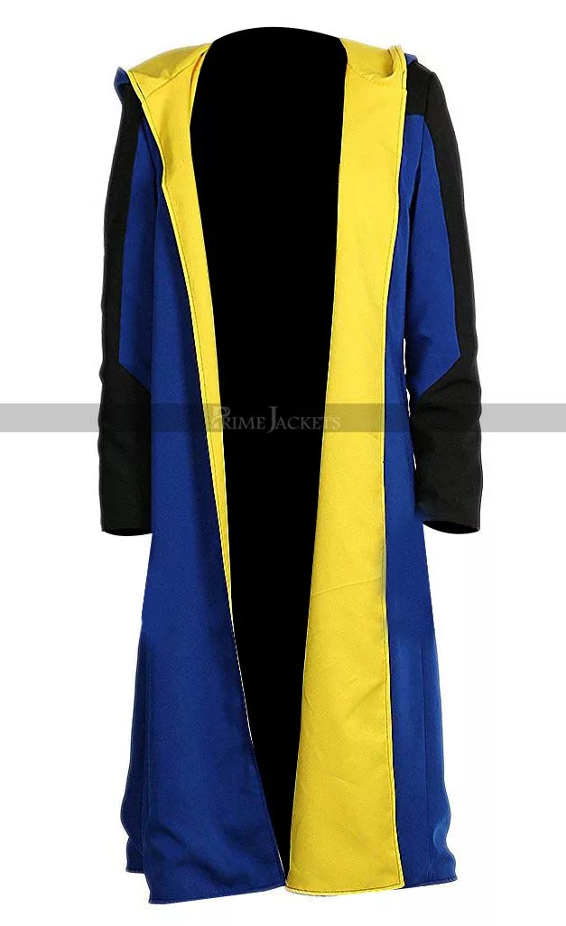 The stunning long coat is a wonderful garb taking style revelation from the famous American animated series Static Shock. The gorgeous trench coat is a fashionable garb worn by the character of Virgil Hawkins. It is genuinely made from the best quality cotton material; finished in a dazzling color combo of blue, yellow and black. An inner viscose lining is present to render great comfort to the wearer. The front has an open style that appears truly amazing and voguish. The coat has a hoodie attached to its collar adding more charm and grace. Stay true to your comic character and get this coat into your closet now.