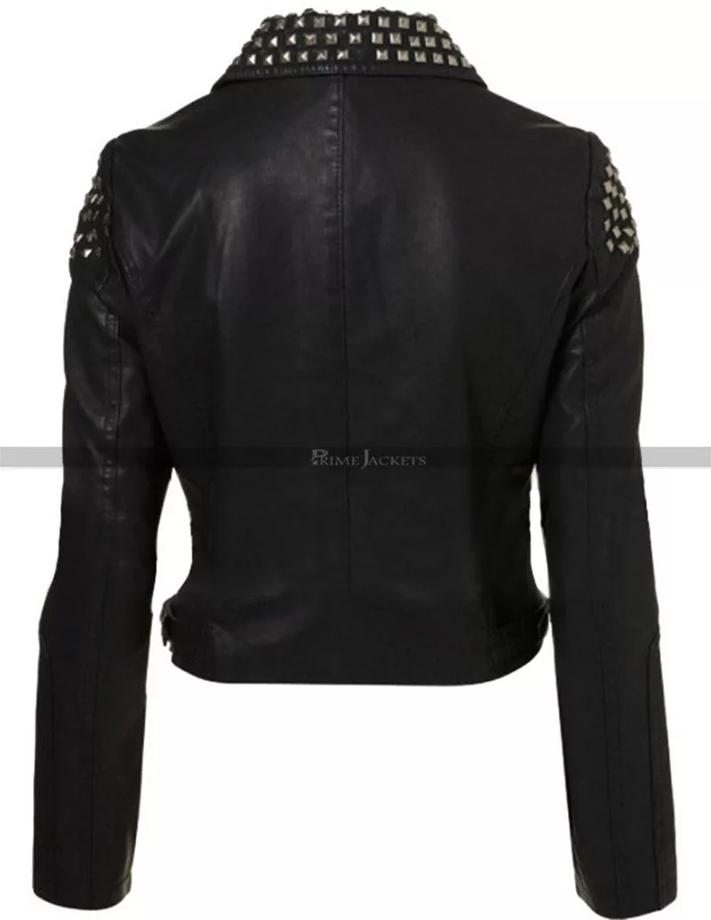 Demi Lovato Studded Faux Biker Leather Jacket