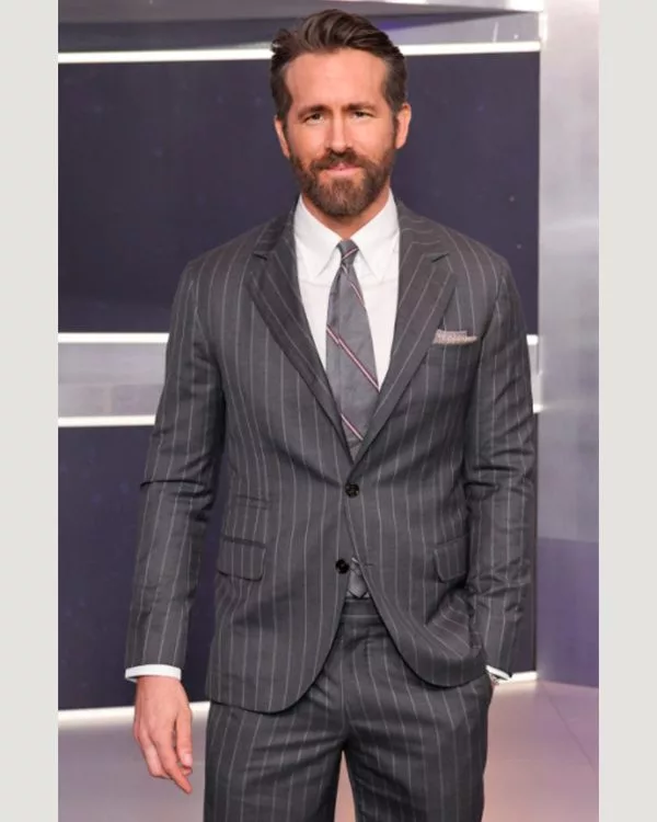 This outfit is sorted in a fabric of the highest caliber and provides all the needed attributes. Having a viscose inside lining that keeps you cozy and at peace is a great idea. Straight-cut pants with two sides and one rear Pocket are included with the grey apparel. The coat is stylish and has collars with notches. The coat’s front is buttoned shut, giving the entire surface a distinctive appearance and improving comfort while wearing it. This Ryan Reynolds Grey Suit stands out thanks to its arm-length sleeves that are stitched with buttoned cuffs, and its usefulness is enhanced by the one chest and two flap waists. It comes in a grey color.
