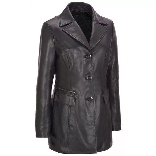 Appear elegantly vintage in this gorgeously designed black petite trench coat for women. It is an alluring style ensemble that will take you from day to night this winter effortlessly. This oh-so-stylish and versatile leather coat works to be your fashion essential wherever you opt to go modishly. It shows the best quality leather construction in a dazzling black finish. The coat is being installed with an inner viscose lining that provides the desirable solace and comfort that every wearer demands. It gives an extra soft layer of warmth for breezy days wearing. The front is adorned with a smart lapel collar and a captivating buttoned closure to fasten easily. The sleeves are full in length with open hem, roomy cuffs. The front four waist pockets reveal a phenomenal visibility with utmost practicality.